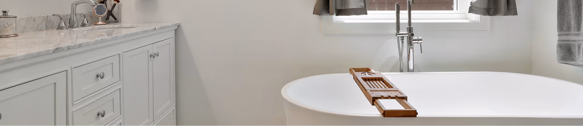 Organization in bathrooms can be a little tricky because we want you to get all that you need without sacrificing critical floor space. When it comes to vanities, towel bars, pull-outs, compartments, and more, we can custom build anything that’s up to code and in your bathroom remodeling design.